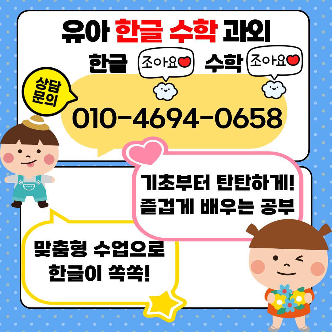1. 유아 한글·수학 1:1 맞춤 수업 진행 (방문 및 온라인 가능)