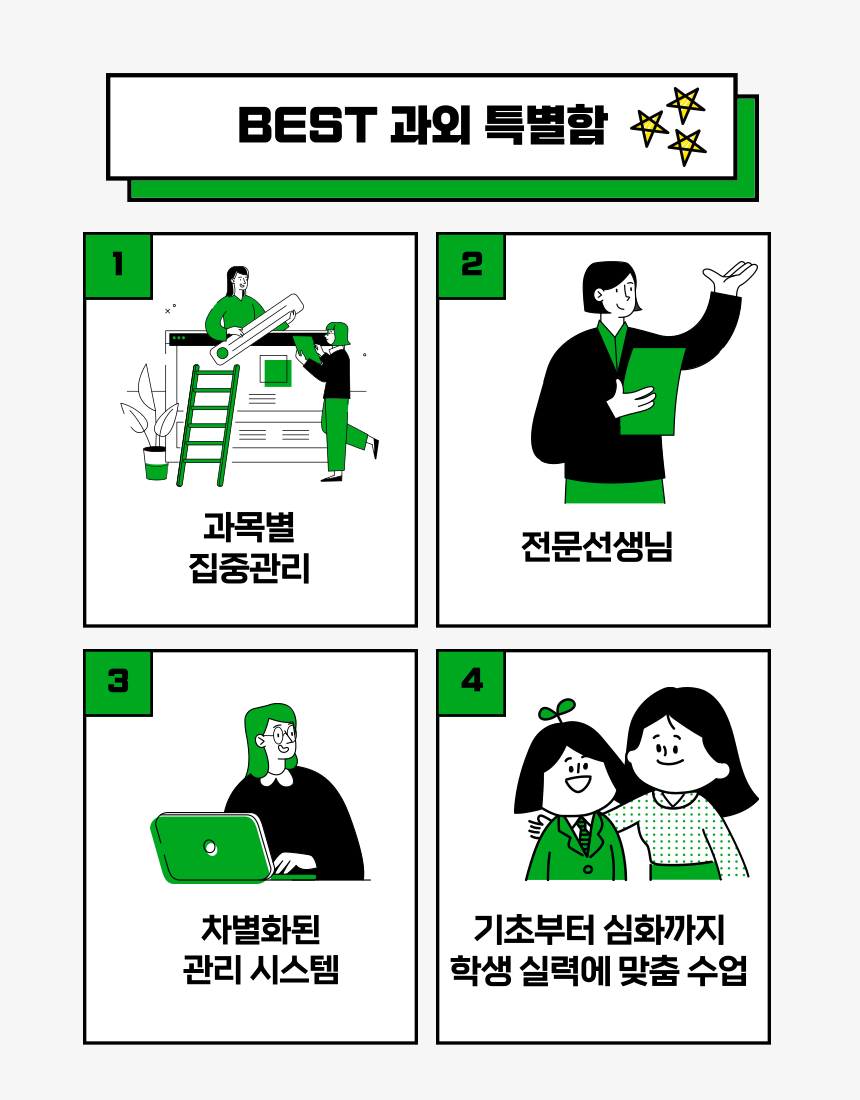 국어과외를 통해 저는 공부뿐만 아니라 스스로 학습하는 힘도 키울 수 있었어요. 혹시 비슷한 고민을 하는 분이 있다면 국어과외를 권유드리고 싶어요. 나에게 딱 맞는 방법으로 배우는 경험은 분명히 값진 변화로 돌아올 거예요.