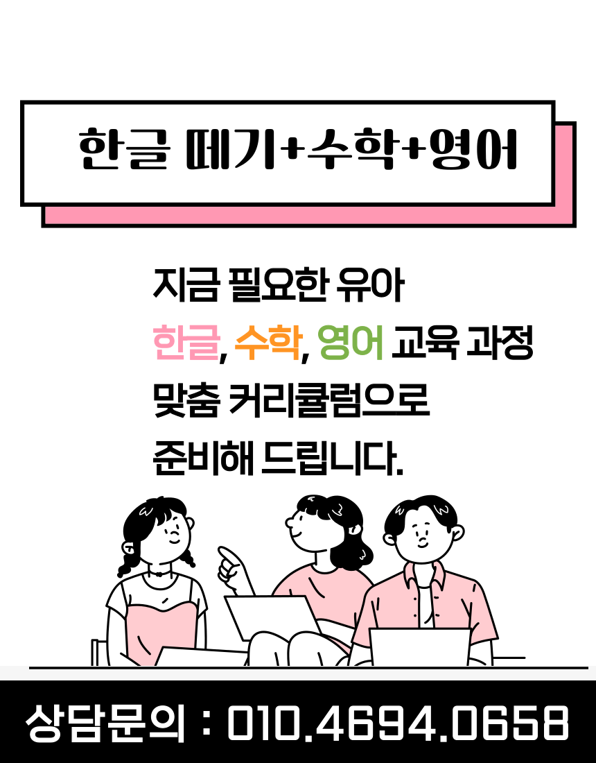 아이 성향에 따라 수업을 조절해주시고, 무엇보다 아이가 편안하게 느낄 수 있도록 배려해주는 부분이 참 인상 깊었어요. 혹시나 아직 한글 시작이 늦은 건 아닐까 고민 중이시라면, 아이의 속도에 맞춰주는 선생님과 함께 시작해보시길 권유드리고 싶어요. 아이가 먼저 글자를 좋아하게 되면, 한글은 정말 자연스럽게 따라온답니다.